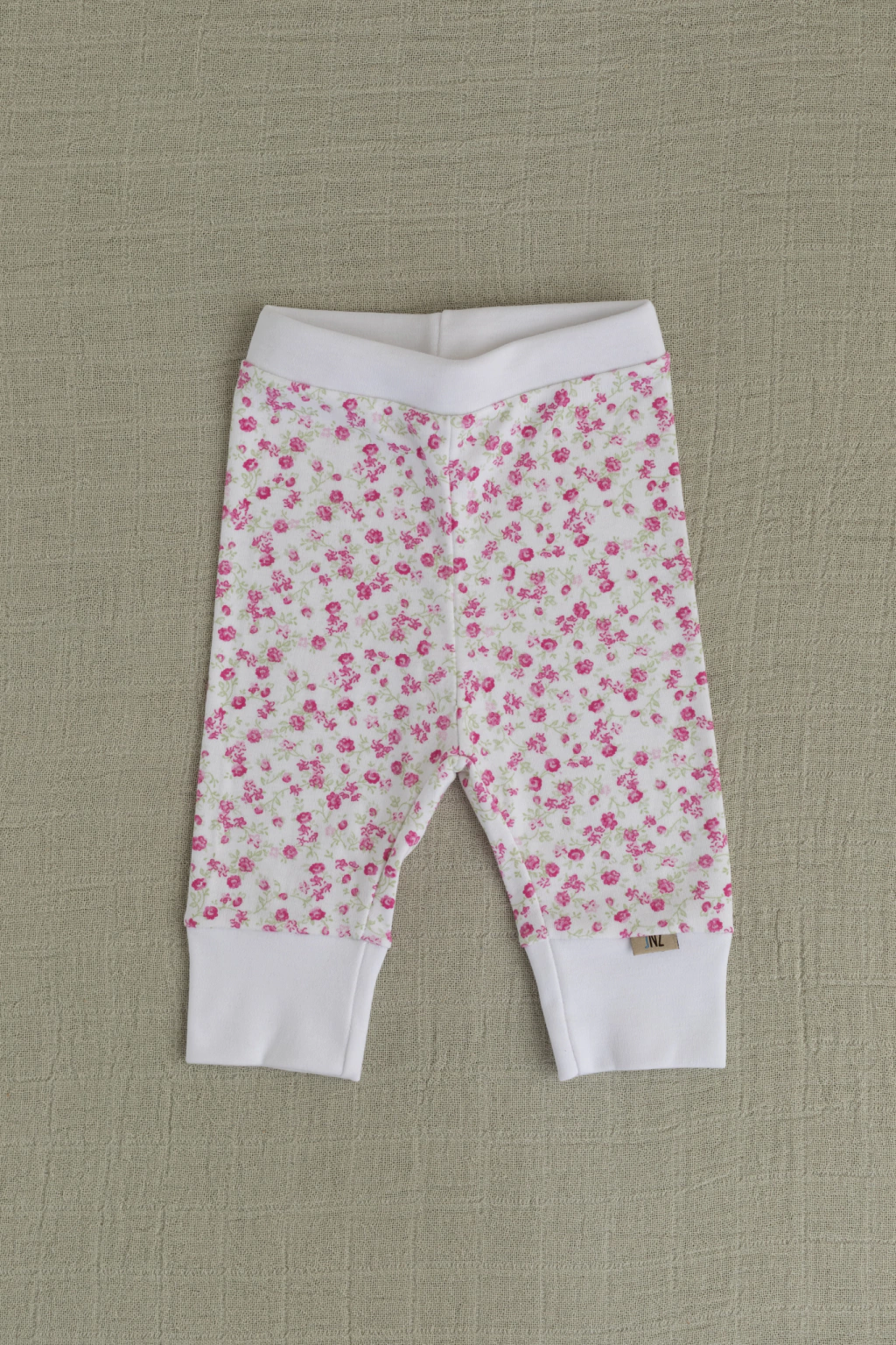 Un pantalón con cintura y puño estampado florcitas rosa viejo